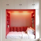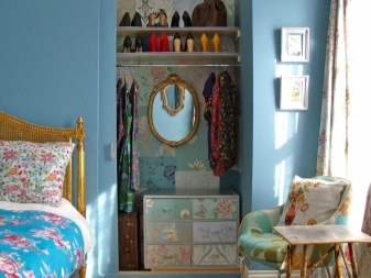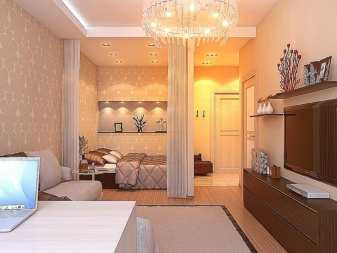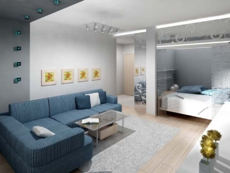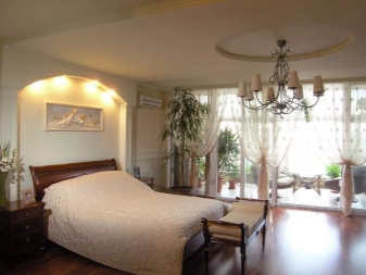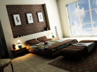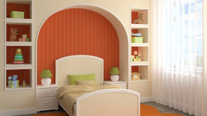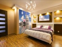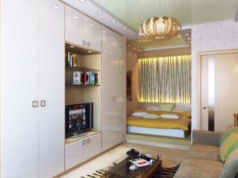 Оформлението на едностайни апартаменти понякога предвижда ниша, до която можете да направите уютна спалня. Конструкциите от гипсокартон, които съчетават функциите на шкаф, рафтове и легло, са много добри за подреждане на ъгъл. За това се поставят прегради от гипсокартон. Оградена площ 6 кв. м. е достатъчно, за да се побере легло. Такива малки стаи са пространство за дизайнерски идеи. Стените са украсени с огледални повърхности, можете да поставите плъзгаща се преграда, да използвате тапети в контрастни цветове в декорацията.