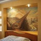 Източен стил обичам и използвам доста често. Леглото с ниши на таблата прилича на легло на принцеса. Аркообразните вдлъбнатини са характерни за този стил, особено се използват мавритански арки, те са монтирани на различни височини. В такива ниши-арки се поставят декоративни вази, лампи, различни красиви малки неща..