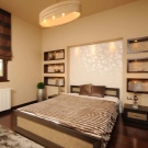 - Шкаф. Архитектурните структури от този вид са важни за подреждането на малко пространство. Можете да вградите гардероб там. Това ще добави цялост към интериора на спалнята. Ниша, в която много нива са направени с помощта на гипсокартон, може да се превърне в удобен стелаж. Може да замени цяла библиотека.