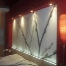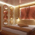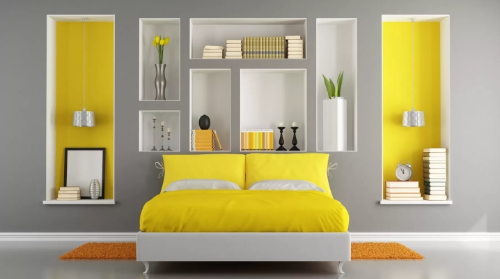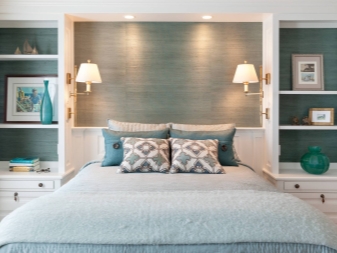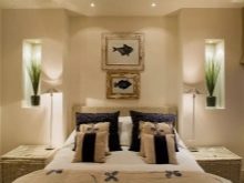 Ниша с малка дълбочина ефективно ще украси главата на леглото. Той не носи практически товар, често се допълва от осветление, е декоративен компонент на интериора и трябва да бъде декориран. Огледало, стъклени повърхности, прозрачни или цветни, драперии, декоративна мазилка могат да се използват като декор..