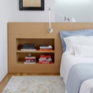 - Бордюр. Дизайнът в главата на леглото може да служи като заместител на нощното шкафче. Удължена ниша над таблата по цялата облегалка може да бъде отделна функционална зона над всяко легло,