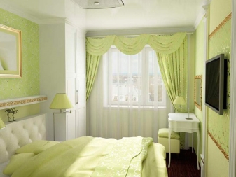 В голяма спалня ще бъдат подходящи масивни завеси с драперии. За малка стая е най -добре да изберете по -скромна опция – от леки завеси или завеси. За да предотвратите удрянето на слънчевата светлина сутрин в очите, можете да закачите тюл..