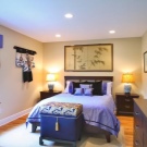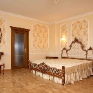 Ако спалнята е голяма, без значение колко голямо е изкушението да я направите скъпи мебели, ограничете се до най -важното. Тоалетката е най -добре поставена в ъгъла на стаята, а тахтата или табуретката трябва да се плъзгат под нея. За да подчертаете размера на стаята, можете да използвате ярки цветове в декорацията на стената. Мебелен комплект (легло, нощни шкафчета и гардероб, скрин), изработен в същия стил, ще изглежда много добре в голяма спалня.
