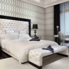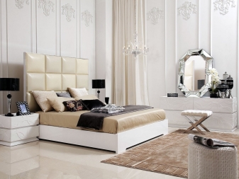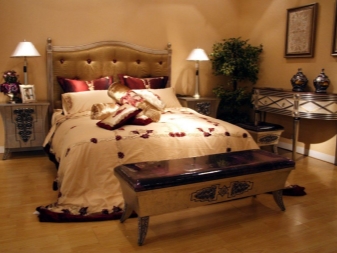 - Тапицирана пейка. Поставя се в подножието на леглото, за да се поставят неща върху него, а завивката се сваля през нощта..