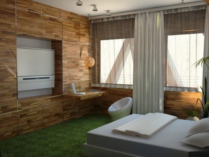 Удобно е да поставите стена срещу леглото, където ще има вграден гардероб, рафтове и бюро, на което е удобно да се учи. Креслото от мека кожа ще бъде чудесно място за почивка, тъй като ще бъде удобно да седнете върху него, например, с книга..