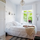 Един от най -забележителните стилове е скандинавският. Характеризира се с използването на светли цветове и естествени материали. Най -често в такава спалня можете да намерите мебели от естествено дърво и много стъклени повърхности. Стъклото озарява пространството, докато дървото озарява интериора и прави стаята по -уютна..