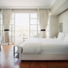 Тази спалня съчетава стил Арт Нуво с класически цветове. Подобен дизайн на спалнята е идеален за всички любители на стила минимализъм. Просто просторно легло, декорирано само със стилно спално бельо и удобни възглавници.