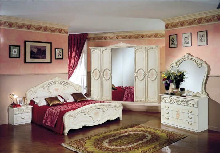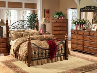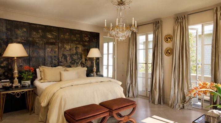 Мебелите за такава спалня често са украсени с дърворезби и стоят на красиви извити крака. Ако е възможно, тогава можете да украсите стаята с някакъв вид антики или неща, стилизирани в античен стил. Те дори могат да бъдат стилизирани като антики със собствените си ръце, като се използват например бои или някои други стилистични трикове..