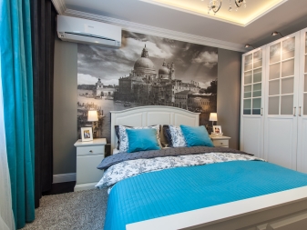Като изключение можете да украсите стената с акцент с фототапет, която се намира в главата на леглото. Можете да изберете градски пейзаж, изображения на цветя, животни, абстракция. Основното нещо е да се откажете от много ярки опции..
