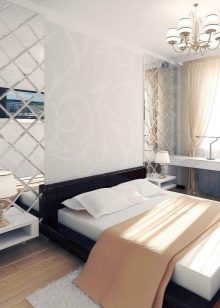 Хромирани дръжки, огледални повърхности и полирано дърво се използват за разширяване на пространството и увеличаване на количеството слънчева светлина. Изисканите картини могат да бъдат окачени като допълнителни елементи. Използват се елегантни подови лампи или керамични фигурки, разнообразни саксийни растения. По -добре е да изберете копринено или памучно спално бельо, без големи шарки. За да създадете спокойна атмосфера, прожекторите могат да се използват в цялата зона и аплици, които са разположени на нощните шкафчета..