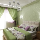- Различни нюанси на зелено (например светло зелено, изумрудено, аквамарин и трева) ще придадат усещане за свежест, ще ви позволят да отпуснете не само очите си, но и нервната система. Зеленият нюанс ще хармонира перфектно със сиви, кафяви и жълти тонове..