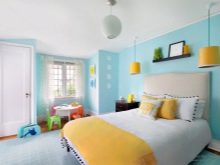 - Небесните тонове ще помогнат за облекчаване на нервното напрежение. За активните и енергични хора този цвят на стената ще помогне да се разсее малко енергия и да се потопите в света на мечтите..