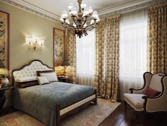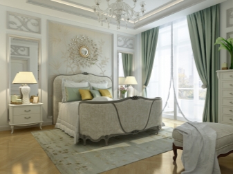 - Класически. Това ще бъде идеален вариант за любителите и ценителите на луксозните варианти. Нежните тонове (бяло, розово, бледо лилаво) са в перфектна хармония със сребристо-златен декор, мазилка, кристални колони и лампи. Шикозна атмосфера ще ви помогне да създадете резбован мебелен комплект, боядисан в бяло. Прозорците трябва да бъдат окачени с масивни брокатени, сатенени или кадифени завеси, които съответстват на цветовата схема на стаята. Можете също така да шиете балдахин за легло от тези тъкани. Наличието на голямо количество светлина ще помогне да се направи истинска кралска спалня от малка стая..