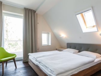 Спалнята поема уединена и дори интимна атмосфера, в която човек може да се отпусне и да се отпусне след тежък ден..