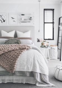 - Скандинавски стил – ще изпълни малка спалня с прохлада и прозрачност. Бялото се използва за декорация, акцентите могат да бъдат направени в бледокафяви или сиво-сини нюанси. Цялата атмосфера трябва да наподобява заснежени планини и ледени реки.
