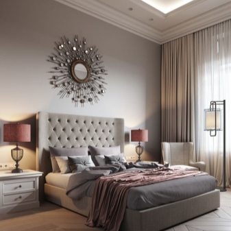Използвайте прости рамки, когато декорирате картини, огледала и фотографии, не претеглени допълнителни елементи. Не подреждайте галерия от спалнята, една снимка ще бъде достатъчна. Ако не можете да си представите интериор без снимки, подредете ги хоризонтално, ако стаята има високи тавани, или в няколко вертикални реда – за стая с ниски тавани.