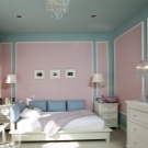 Комбинацията от розово и синьо изглежда много оригинална и необичайна. Тази комбинация от нюанси ще внесе хармония в интериора на спалнята, ще я направи по -романтична и бляскава..