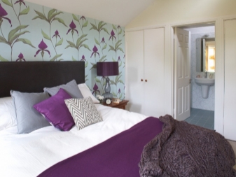 Люлякови и лилави нюанси в комбинация със синьо ще придадат на стаята някаква мистерия. Люлякови акценти на фона на бледосини тапети ще създадат стилни акценти в интериора..