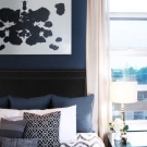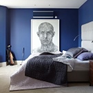 Наситеният и дълбок тон се отнася до студени нюанси на синьото. Този цвят е идеален за модерна спалня.. Често се използва за украса на тавана, за да създаде ефект на мистериозно нощно небе. LED осветлението във формата на звезда помага за подобряване на този ефект..