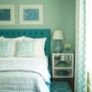 Този цвят е хармонична комбинация от два нюанса едновременно – синьо и зелено.. При правилното осветление изглежда различно. Така че на дневна светлина стените на аквамарина ще изглеждат сини, а вечер, когато светлината стане изкуствена, те ще придобият приятен зеленикав оттенък..