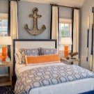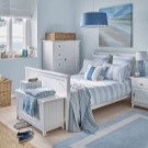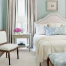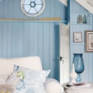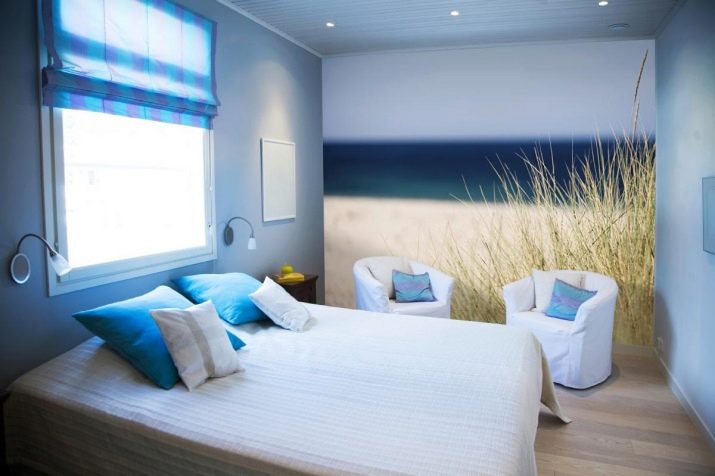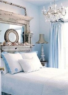 Най -често срещаният е спалня в морски стил. Нежните сини нюанси са свързани само с морето и небето. Тази стая е много проста за декориране – използвайте светли мебели, леки материи като тафта и тюл и подходящи аксесоари..