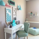 За момичета сиво-синята спалня обикновено е декорирана в романтичен стил. Предпоставка е наличието на розово в интериора, както и декоративни елементи като волани и дантели.