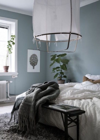 Разбира се, синьо-сивата класика не е за всеки. Всичко зависи от вкуса на собственика на спалнята и размера на стаята.. Като добавите други тонове на палитрата, можете да добавите допълнителни акценти и да направите интериора на стаята още по -привлекателен и стилен..