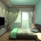 Синият цвят в интериора също е в състояние визуално да разшири пространството на спалнята и да я направи приятна за окото. В комбинация със сиво, той създава среда, изпълнена с такива естествени символи като небето и морето, които благоприятно ще възприемат човешкото подсъзнание..