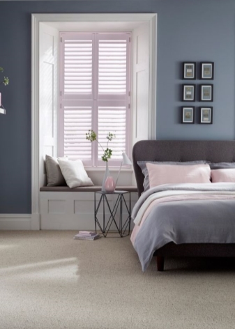 Професионалните дизайнери не препоръчват допълнително декориране на сиво-синя стая с мебели или вещи от лилаво, черно, бордо и люляк, тъй като те не се съчетават добре с тези цветове, а също така могат визуално да намалят пространството на спалнята и да я затъмнят.