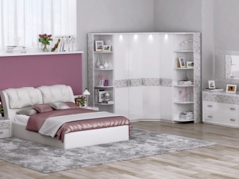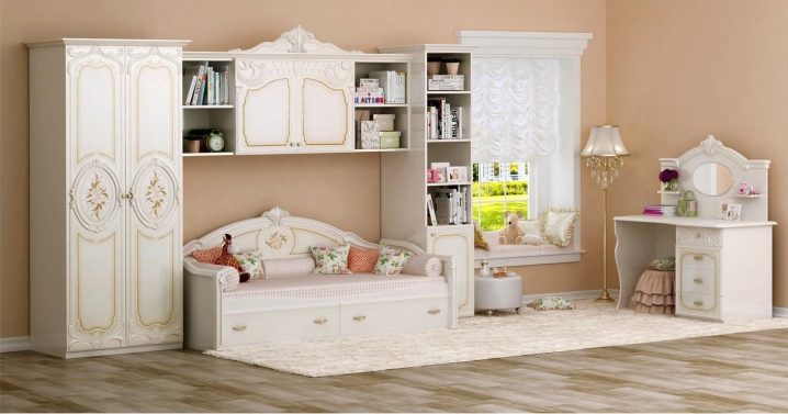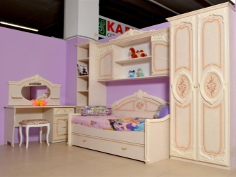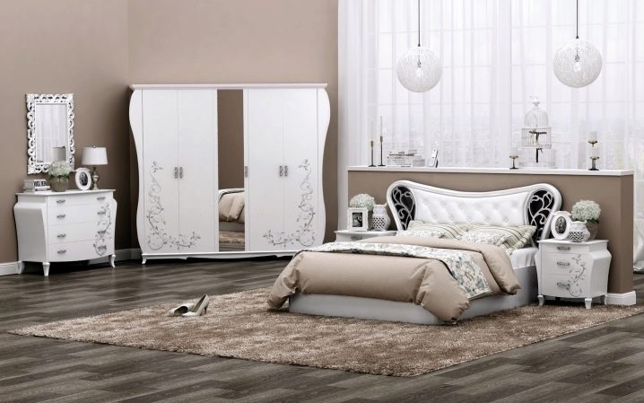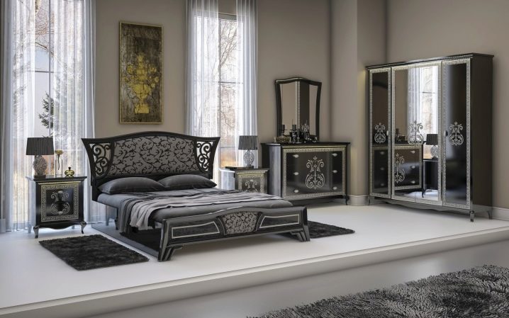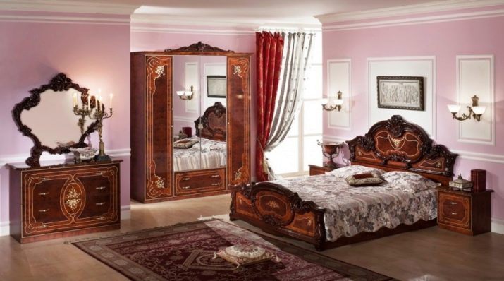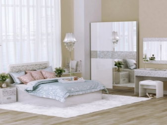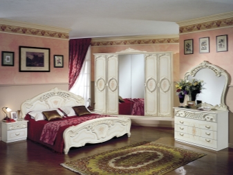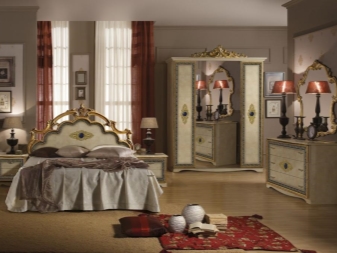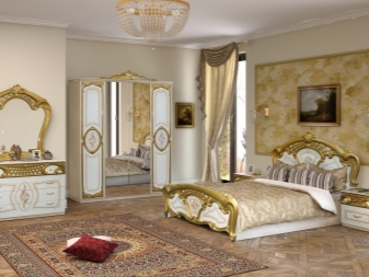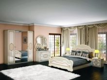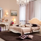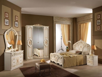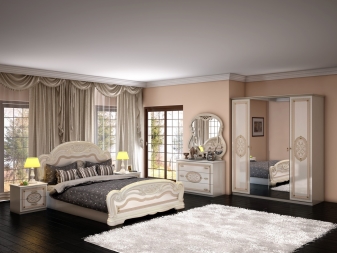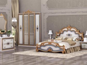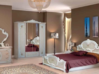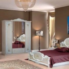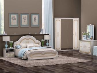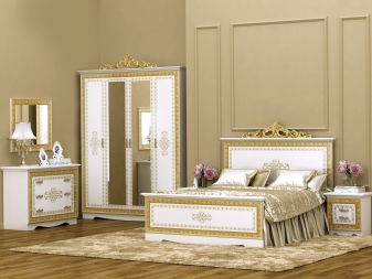 Луксозното легло е оборудвано с високо табла, гардеробите са представени във варианти с 4 и 6 врати. Декоративна корона – необичаен елемент, който е включен в комплекта по желание на клиента.