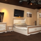 Този комплекс също е проектиран в духа на “дворцовите” мебели. Богато украсените обеми и шарените копринени шарки придават на бароковата спалня особен чар и индивидуалност.