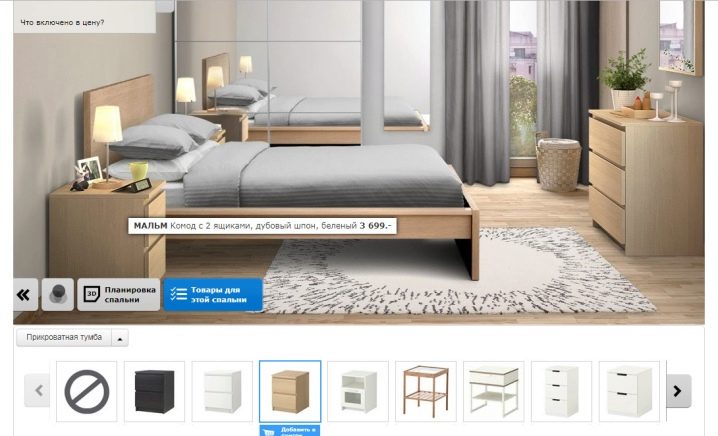 Същността на този конструктор е много проста.. Всичко, което се изисква от купувача, е да отидете на уебсайта на компанията и да изберете секцията „Софтуер за дизайн на Ikea“. Ще ви бъде представен списък със спални в различни стилове, вариращи от класически до скандинавски. След като изберете стил, ще се отвори нов прозорец, в който можете както да видите съществуващите готови опции за спалня, така и да сглобите свои собствени.