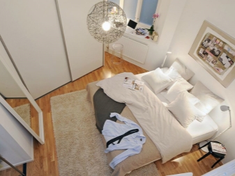 Друг реален пример за това как дори и най -малката стая може да се превърне в удобна и уютна спалня. Мебелите в модерен стил изглеждат ярки, но в същото време дискретни. Спалнята включва мебели, които са наистина необходими. В същото време самата стая изглежда много лека, уютна и органична..