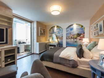Друг реален пример за това как дори и най -малката стая може да се превърне в удобна и уютна спалня. Мебелите в модерен стил изглеждат ярки, но в същото време дискретни. Спалнята включва мебели, които са наистина необходими. В същото време самата стая изглежда много лека, уютна и органична..