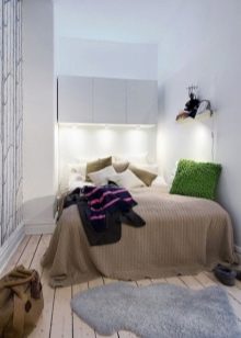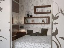 Що се отнася до гардероба, по -добре е да се даде предпочитание на компактно отделение с огледални врати. Такава мебел визуално ще разшири пространството, като обикновените огледала..