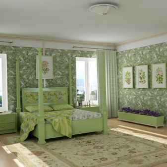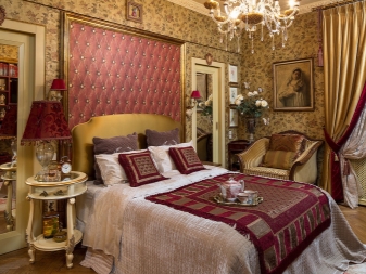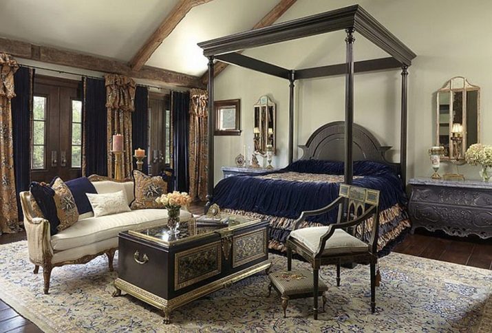 - Мебелите обикновено са масивни, а леглото стои на високи крака.