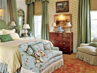 Спалня с английски интериор трябва да има кресла. Те са поставени до прозореца, до камината или библиотеката. Можете също така да поставите малка маса или подова лампа точно там. За тапицерията на мека мебел най -често се избира кожа или кадифе. Ако размерът на стаята позволява, в спалнята може да се постави библиотека или рафтове над леглото. Това е в съответствие с английската традиция да се чете преди лягане. Малък диван или пейка също е атрибут на спалня в английски стил..