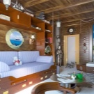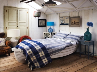 Ако къщата ви се намира до езеро или река, стаята може да бъде подредена в морски стил. Изглежда доста органично. Изберете светли и сини нюанси за мебели и драперии за прозорци.