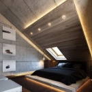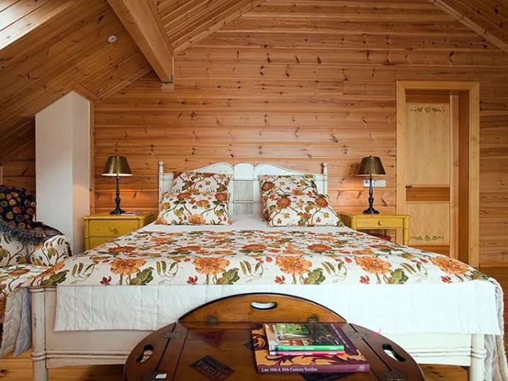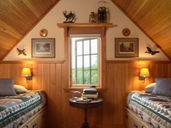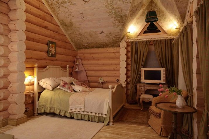 Често в дървена стая горната стая също се отдава на спалнята. Това може да бъде стая, която преди това е била замислена като таван или складово помещение. В него можете да подредите напълно уютна стая за почивка и сън..