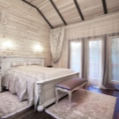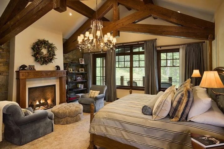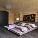 Спалня в този стил е идеална за уютно жилищно пространство. Естественото дърво е отлично за пропускливост на въздуха и насърчава добрия сън.