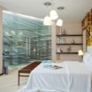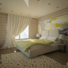 Ако спалнята се намира на втория етаж, тогава можете да подредите всичко с максимално удобство. Двойна стая и баня са чудесна идея както за млада двойка, така и за родители. Инсталирайте легло и спален комплект в основната стая, а тоалетка и огледало могат да бъдат поставени в банята, която се намира много близо.