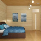Полилей в къща, изработен от висококачествени трупи, трябва да бъде със сянка. На тавана не трябва да има отворени източници на светлина. Декоративното осветление в спалнята от залепена дървена къща също ще бъде подходящо. Правилно избраната лампа или аплика ще ви помогне да завършите декора на стаята. С негова помощ можете да подчертаете картина, ниша в стената, скулптура или друг предмет на декора..