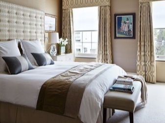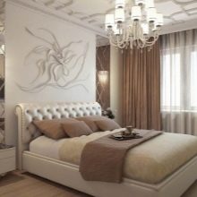 Малка спалня не може да бъде тъмна, но такива ще бъдат тоновете, които ще служат като акценти. Ако интериорният дизайн е бежов, тогава намерете ярко покривало и завеси, те също могат да бъдат в шоколадови тонове, но текстилът със същия тон като стените ще изглежда по -елегантен, отпечатъкът или шарката ще бъдат акцент.