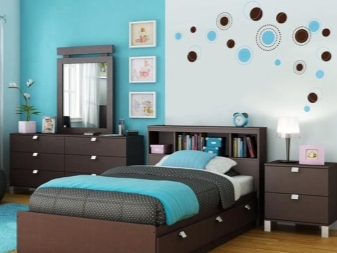 Любовта на дизайнерите към комбинациите шоколад-тюркоаз в интериора е огромна. Студеният тюркоаз балансира шоколада, освежава го. Ако промените съотношението и наситеността на тези два цвята, получавате благороден и спокоен интериор. Доста рядко се среща комбинация с цветове като графитово сиво, виолетово, тъмно синьо.