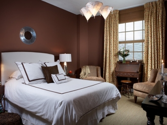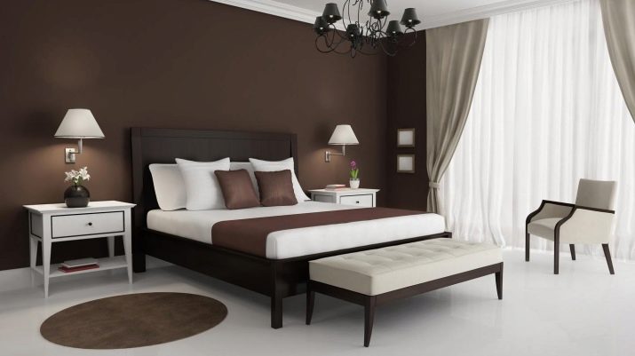 В дизайна на кафява спалня е необходимо цветовете да се редуват и да се поставят акценти.
