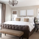 Основният герой на спалнята е леглото. Може да бъде украсена с декоративна табла.