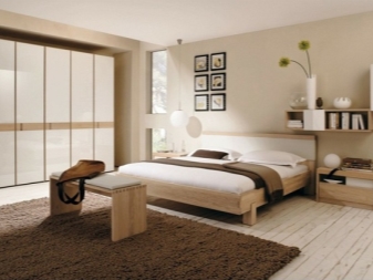 Не по -малко обичайно е да декорирате спалня със стени и подове в светлокафяв, млечен шоколад или друг подобен нюанс. Такъв интериор ще допълни мебелите в шоколадови тонове. С монохроматичен дизайн, за да придадат изразителност, няколко интериорни детайла трябва да са с малко по-различен нюанс, различаващ се с 1-2 тона от основния в една или друга посока..