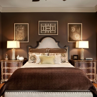 Всичко това трябва да бъде избрано, като се вземе предвид стилът, избран за дизайна на кафявата спалня..