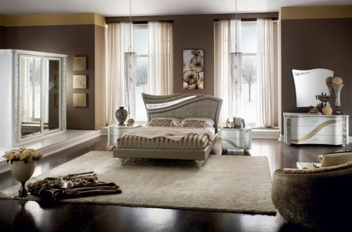 Извитите линии изглеждат интересно в комплектите за мебели за спалня като характерна черта на тази посока и дизайн..