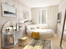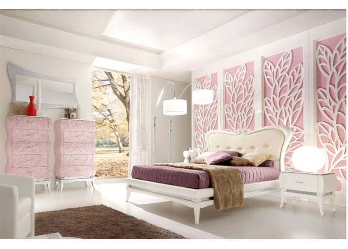 Огледало в рамка с издълбана рамка, както и картина на художник модернист, ще се превърне в сериозен представител на стиловата тенденция в спалнята. Асиметрията в дизайна на стените ще добави декор към художествената концепция за навиващи се линии..